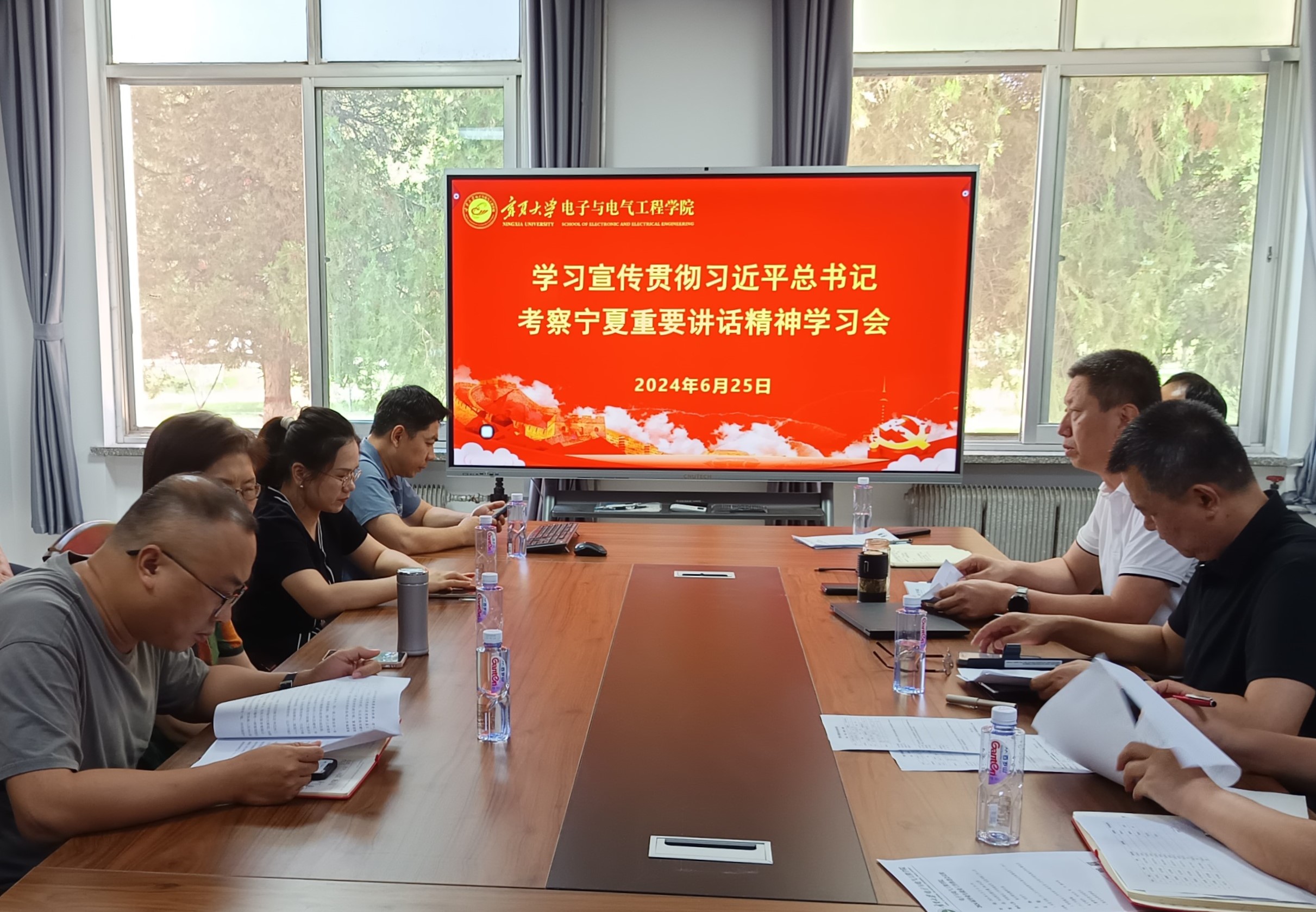 【电院讯 刘平/文 马占红/图】6月25日下午,我院召开学习宣传贯彻习近平总书记考察宁夏重要讲话精神学习会。全体院领导参加会议,会议由学院党总支书记何彦平主持。
