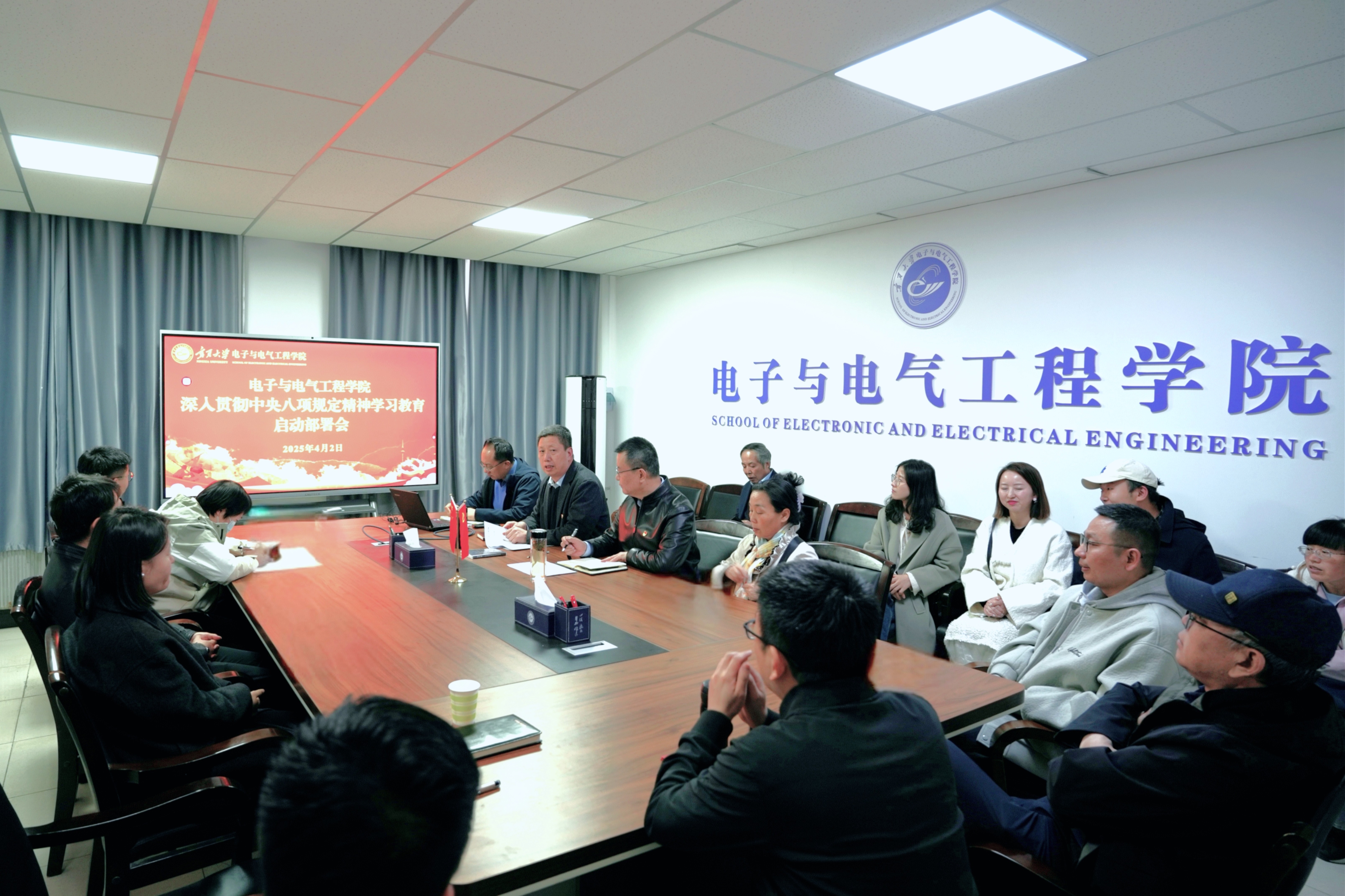 会上,传达学习了学校党委关于深入贯彻中央八项规定精神学习教育的会议精神,结合学院深入贯彻中央八项规定精神学习教育工作清单,对学习教育的目标任务、阶段安排和具体措施进行部署安排。