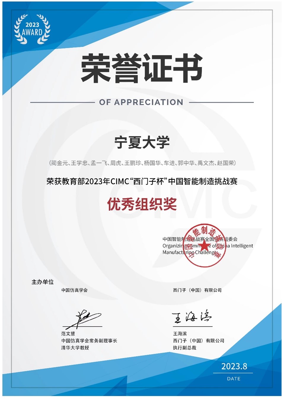 我院荣获教育部2023年CIMC“西门子杯”中国智能制造挑战赛优秀组织奖