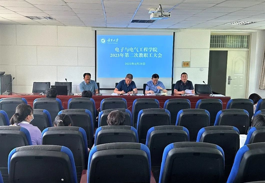 【电院讯 万艳妮/文 刘心仪/图】6月28日,我院在怀远校区博远楼217报告厅召开第二次全院教职工大会,通报学院重点工作开展情况,布置学期末相关工作,集中开展安全教育工作。