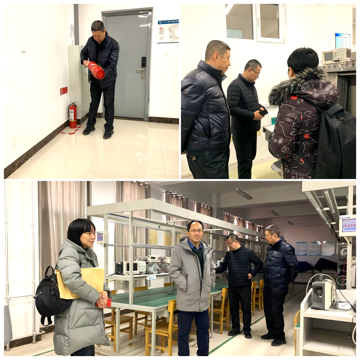【电院讯 郭中华/文 刘平/图】为切实做好学期末及寒假期间学院实验室安全工作,预防安全事故发生,1月12日上午,我院党总支书记何彦平,院长孙学宏,副院长郭中华及相关实验室负责人一行对怀远校区博远楼、树华楼、贺兰山校区致知楼、科技楼内的实验室进行安全大检查。