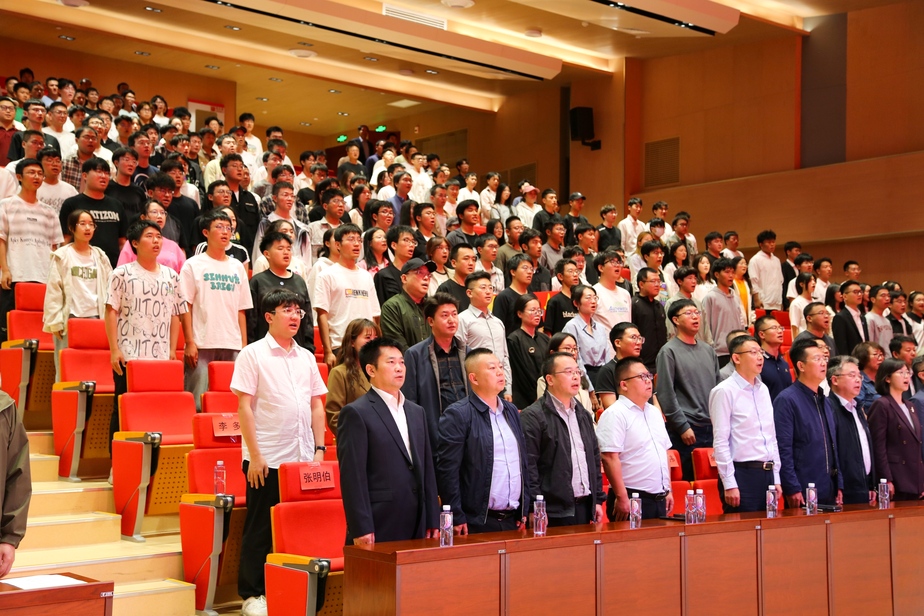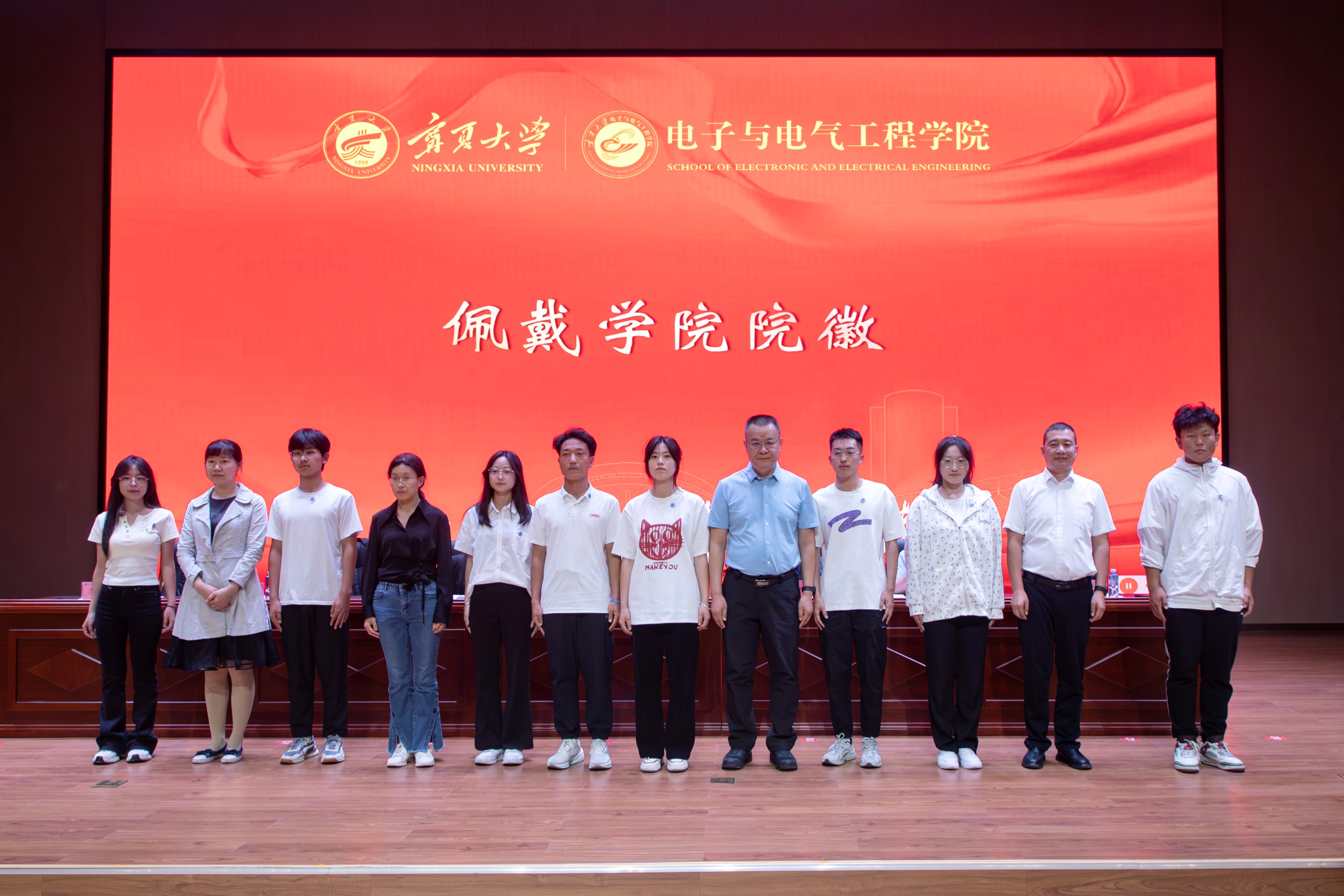典礼现场,本科新生班主任为新生代表佩戴William希尔院徽。台下,新同学现场集体佩戴院徽。从此刻起,来自全国各地的新同学正式成为“电院人”。未来的学习生活中,学院将与同学们携手同行、着笔谱写属于新时代青年学子的青春篇章。