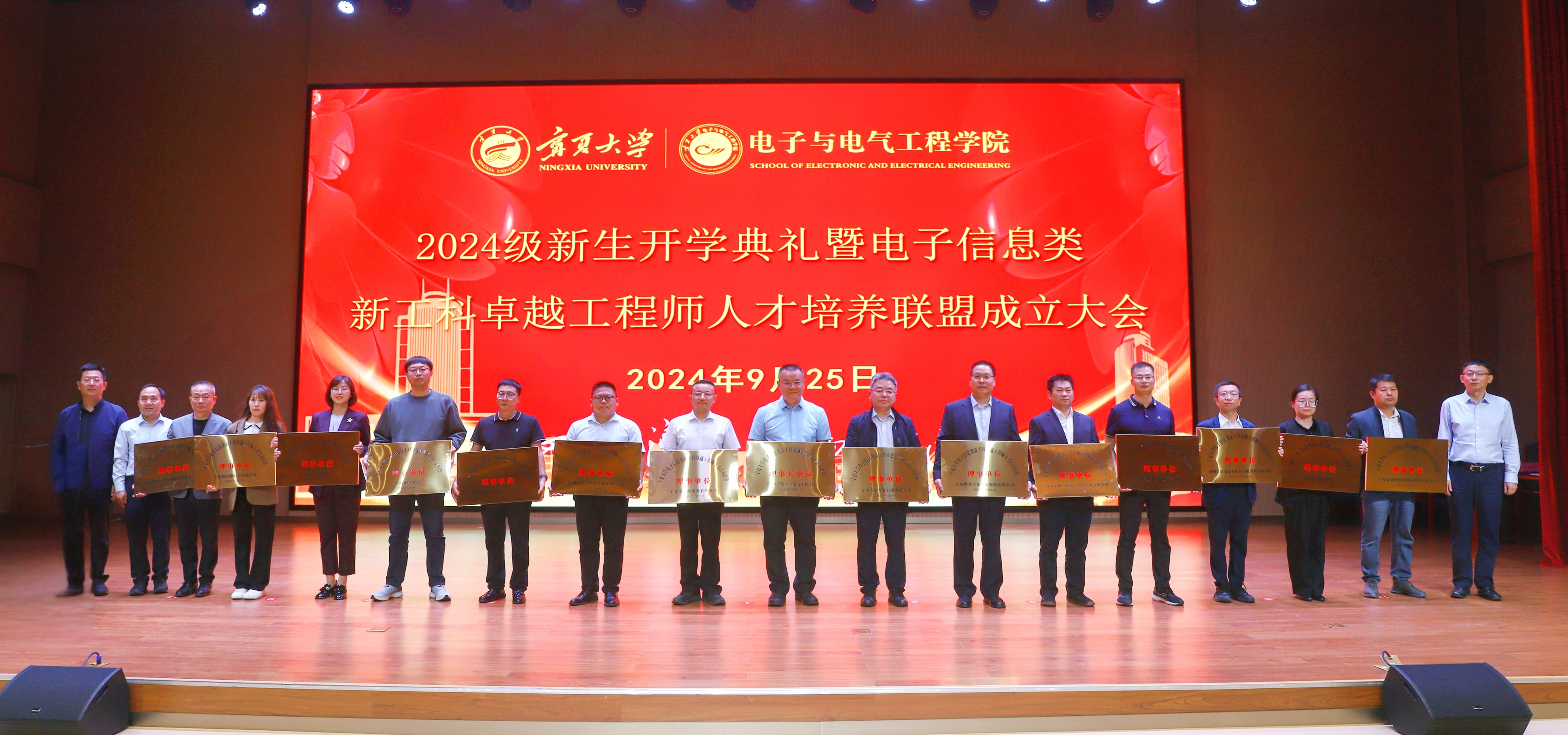 【电院讯 马睿/文 韩腾、程博/图】秋光为序,筑梦启航;新学肇始,万象更新。9月25日,我院2024级新生开学典礼暨电子信息类新工科卓越工程师人才培养联盟成立大会于贺兰山校区笃行楼一楼报告厅举行,来自全国各地的262名新同学相聚在贺兰山下,与电路共舞,与代码对话,共同开启在William希尔的求学之路,同时还有来自国内电子、通信和电力行业的公司领导和优秀校友共同开启并见证William希尔电子信息类新工科卓越工程师人才培养联盟的正式成立。会议由学院党总支书记何彦平主持。