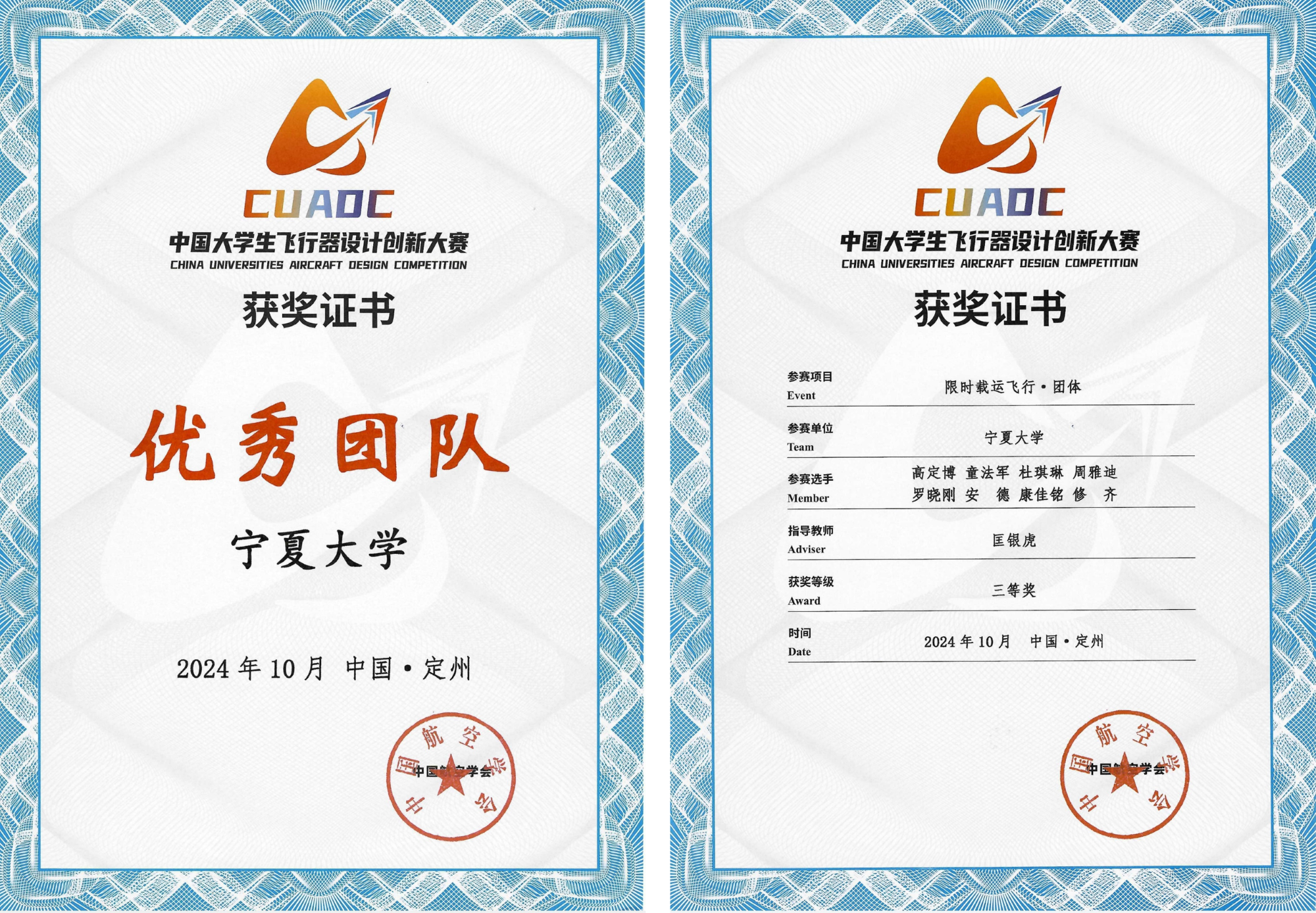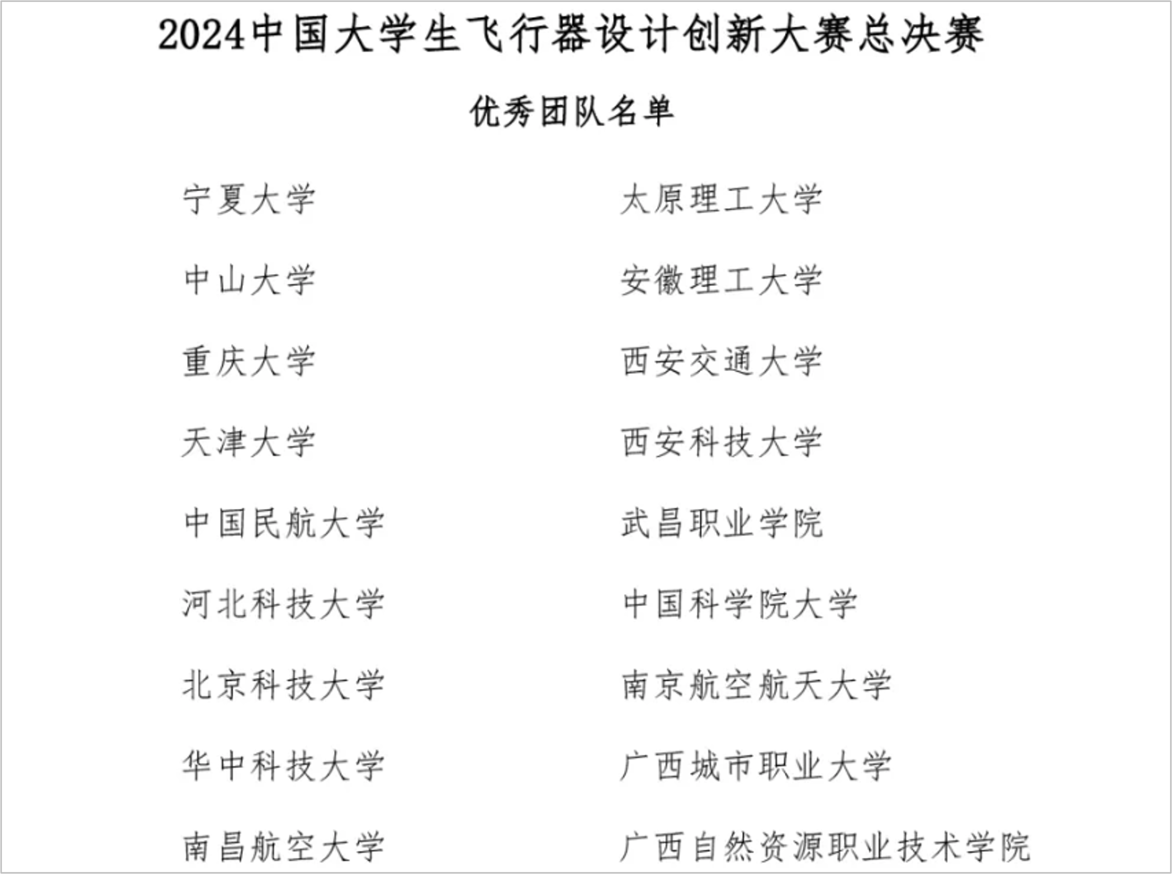 荣誉链接:2024中国大学生飞行器设计创新大赛成绩册