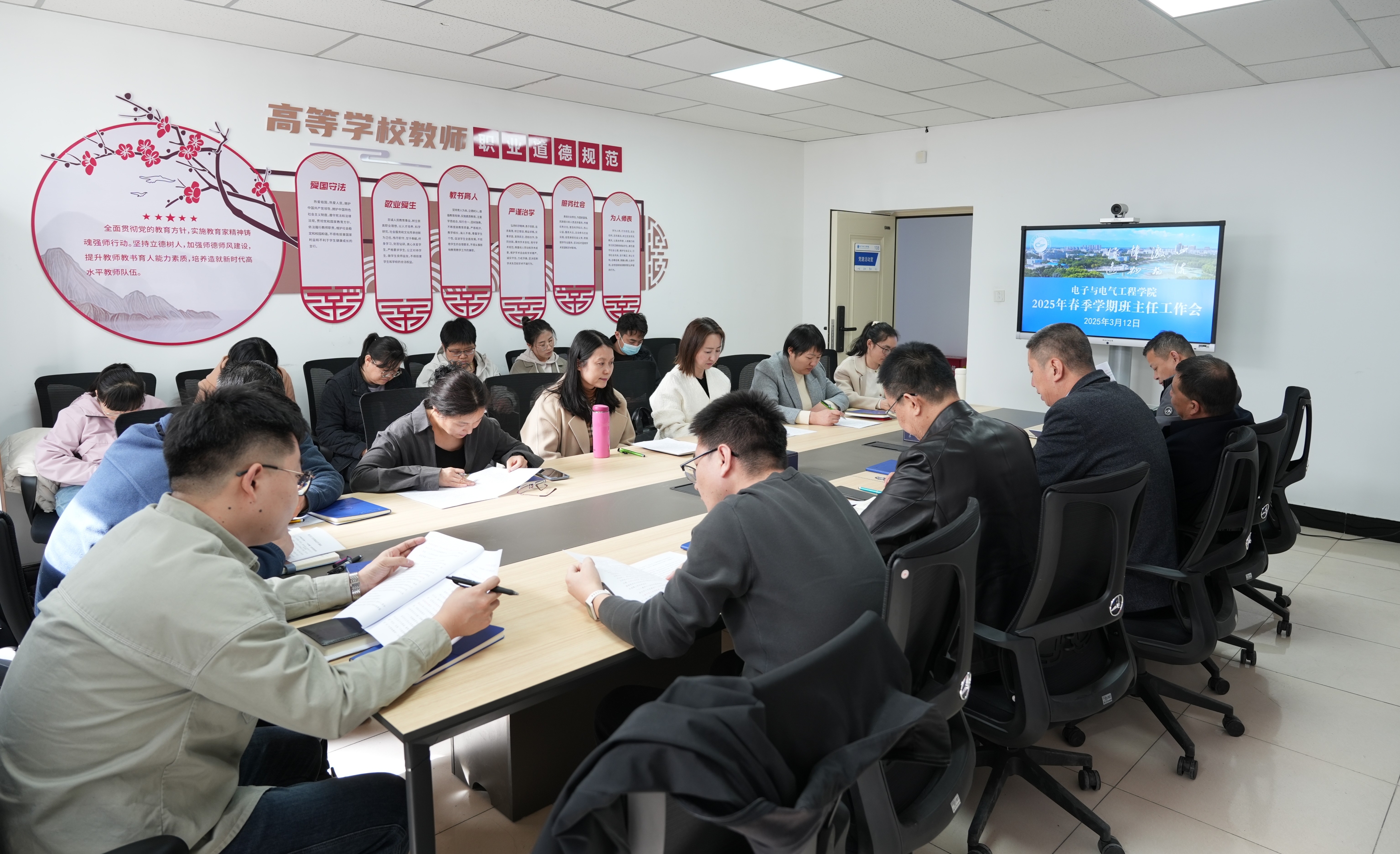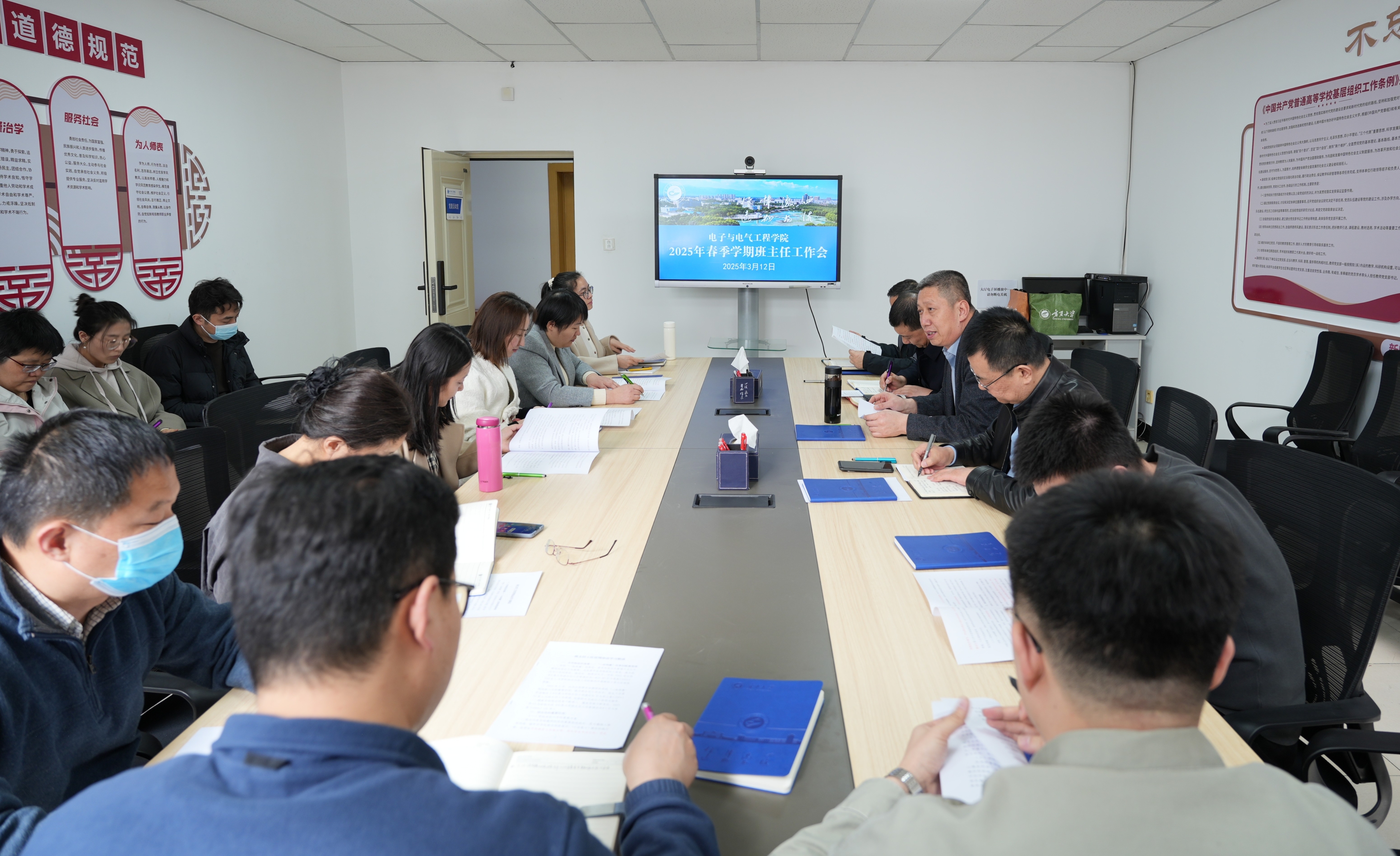 【电院讯 杨向红/文 刘洋/图】为进一步加强新学期本科生教育管理工作,推动学风建设,构建有温度的协同育人氛围,3月12日,我院于怀远校区德言楼108会议室组织召开2025年春季学期本科生班主任工作会议。会议由学院党总支书记何彦平主持。