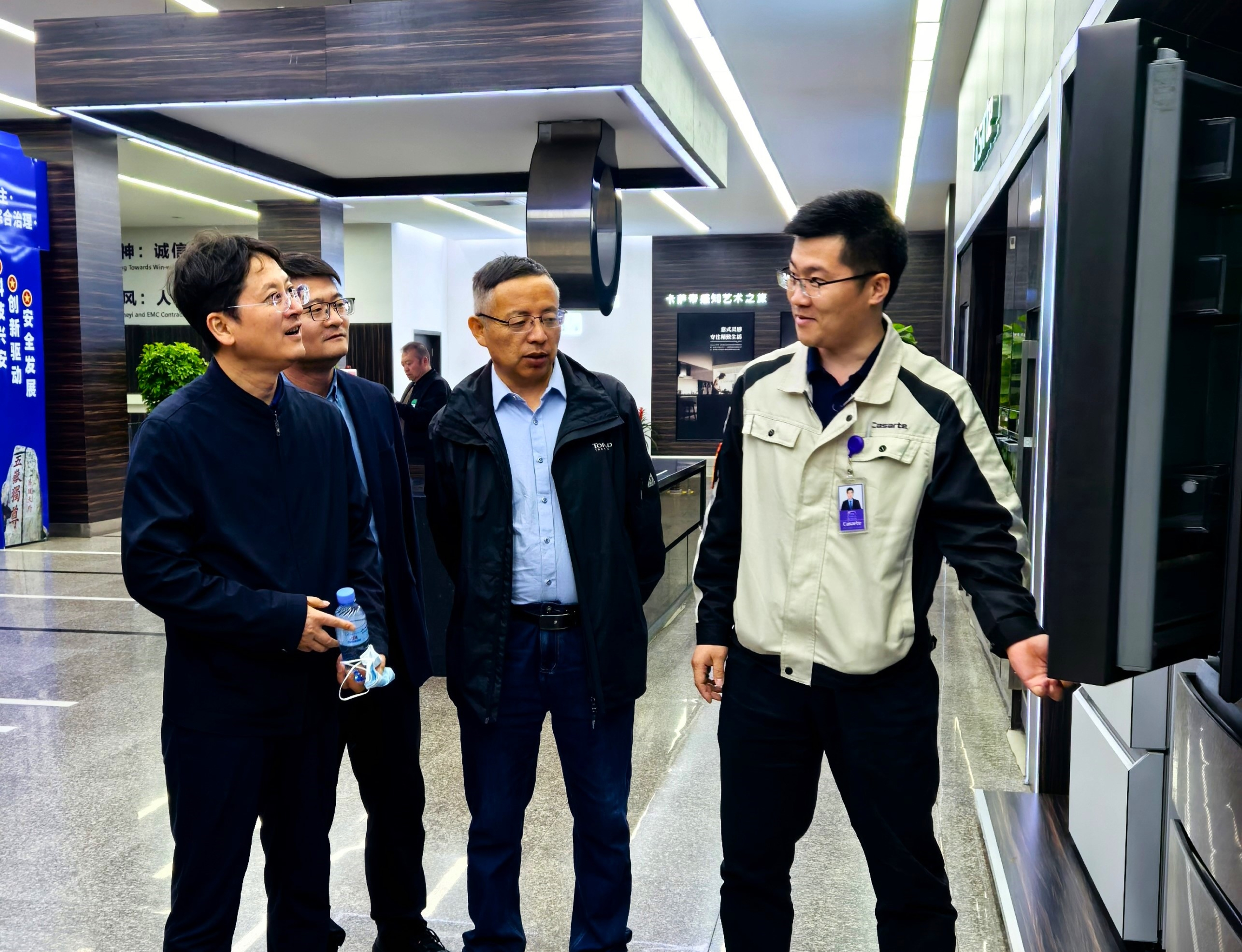 在企业负责人的陪同下,学校一行参观走访企业博物馆、产品展厅、生产车间、办公场所和员工生活区,详细了解企业概况、发展历程、主要业务、研究方向、人才需求、校企产学研合作和企业文化等情况。