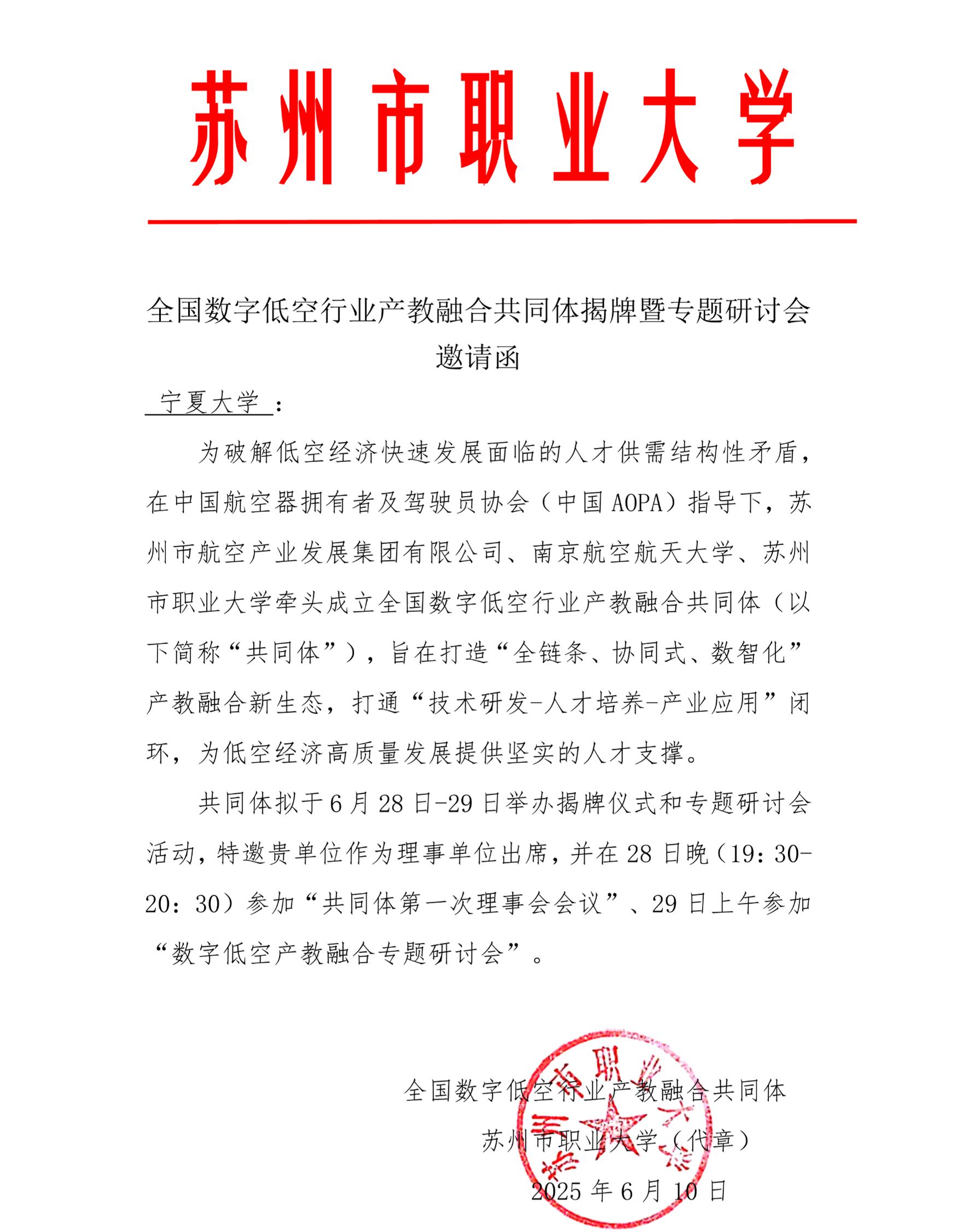 作为全国数字低空行业产教融合共同体理事单位,我院受邀参加共同体揭牌仪式及首次理事会会议。共同体在中国航空器拥有者及驾驶员协会(中国AOPA)指导下,由苏州市航空产业发展集团有限公司、南京航空航天大学、苏州市职业大学牵头成立,致力于构建“全链条、协同式、数智化”产教融合新生态。学院教师积极参与了“数字低空产教融合”“低空经济产学研合作和人才培养”等专题研讨会,与业界同仁深入交流学习。