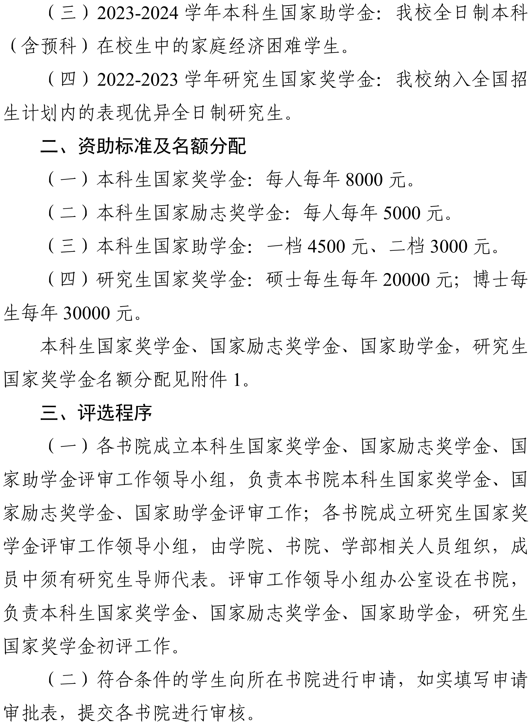 关于做好2022-2023学年本科生国家奖学金、国家励志奖学金、国家助学金,研究生国家奖学金评选工作的通知