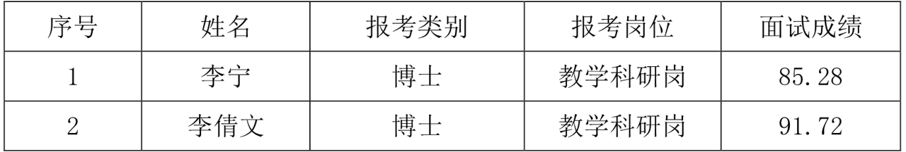 根据《William希尔2024年新引进博士工作人员招聘工作方案》,通过资格审查、现场面试、专家评审等程序,现将参加面试人员成绩予以公示。