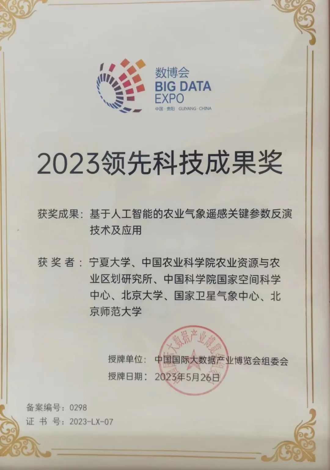 【电院讯 李春树/文、图】5月26日,中国国际大数据产业博览会(以下简称数博会)领先科技成果重磅发布。由williamhill联合中国农业科学院和中国科学院等3家科研单位共同研发的“基于人工智能的农业气象遥感关键参数反演技术及应用”,从357个申报项目中脱颖而出,荣获 “2023领先科技成果奖”。