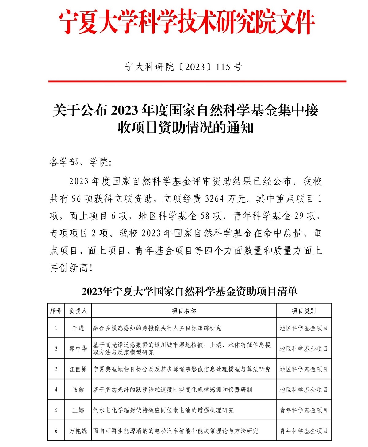 我院作为今年新成立的学院,国家自然科学基金项目取得开门红,共有6项国家自然科学基金项目获批,其中地区科学基金项目4项,青年科学基金项目2项。