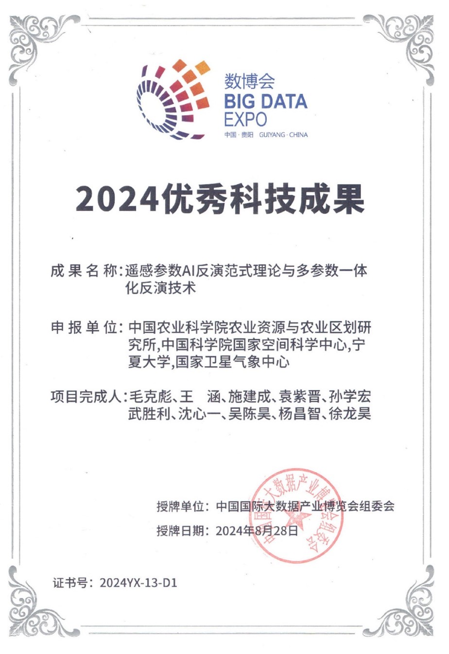 【电院讯 李春树/文、图】近日,在2024年中国国际大数据产业博览会(数博会)上,williamhill作为主要参与单位之一,与中国农业科学院农业资源与农业区划研究所、中国科学院国家空间科学中心和国家卫星气象中心等单位联合研发的“遥感参数AI反演范式理论与多参数一体化反演技术”项目荣获2024中国国际大数据产业博览会优秀科技成果奖,展示了williamhill在大数据与人工智能技术结合遥感监测领域的卓越贡献。