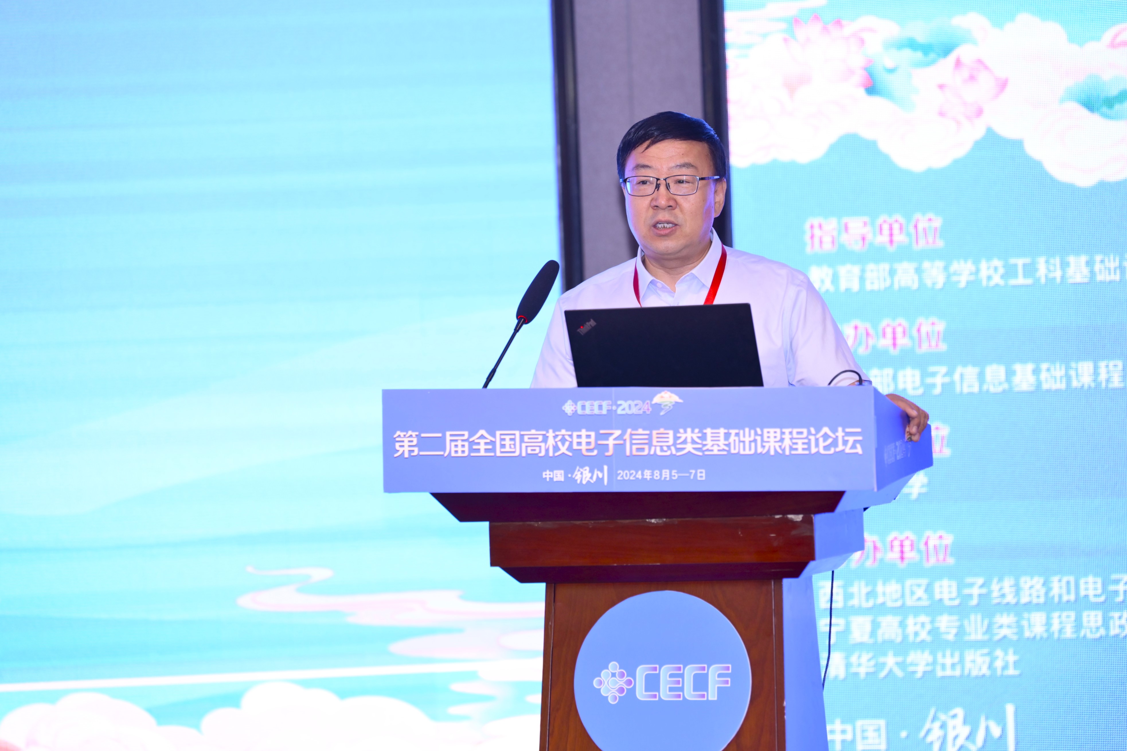 【电院讯 陈鹏/文、图】8月5日至7日,由教育部高等学校工科基础课程教学指导委员会指导,教育部电子信息基础课程虚拟教研室主办,williamhill承办,西北地区电子线路和电子技术教学改革研究会、宁夏高校专业类课程思政教材研究基地、清华大学出版社协办的第二届全国高校电子信息类基础课程论坛在银川举行。